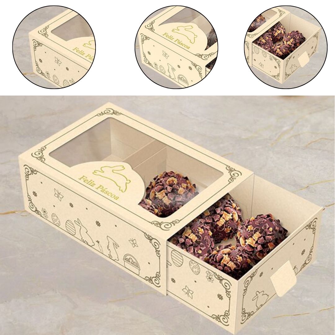 A Caixa 6 Doces Gaveta com Visor da linha Páscoa Luz é sofisticada e funcional.