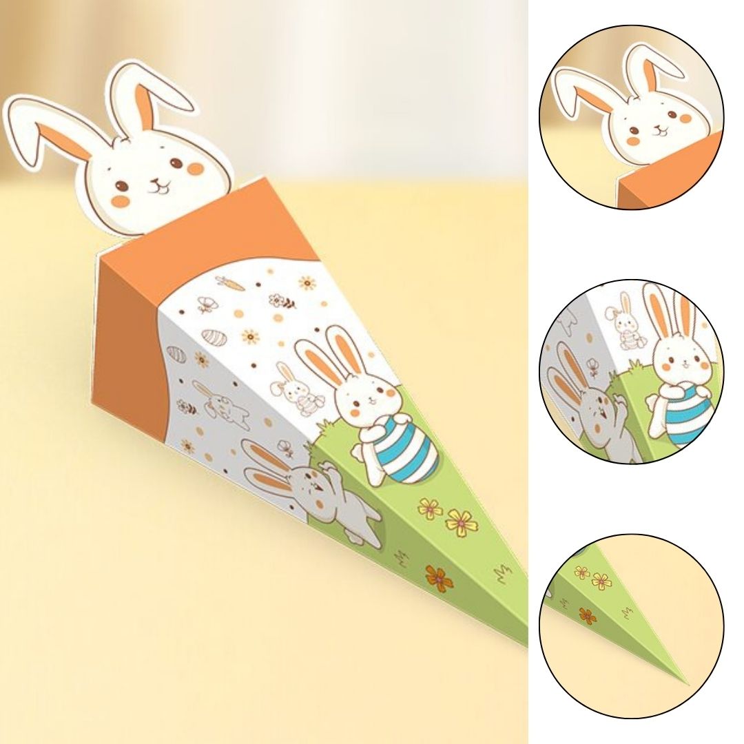 O CONE COELHO DA LINHA PÁSCOA COLORIR É LÚDICO E ENCANTADOR. COM FECHO EM FORMATO DE COELHO, TORNA O PRESENTE DIVERTIDO E CRIATIVO.