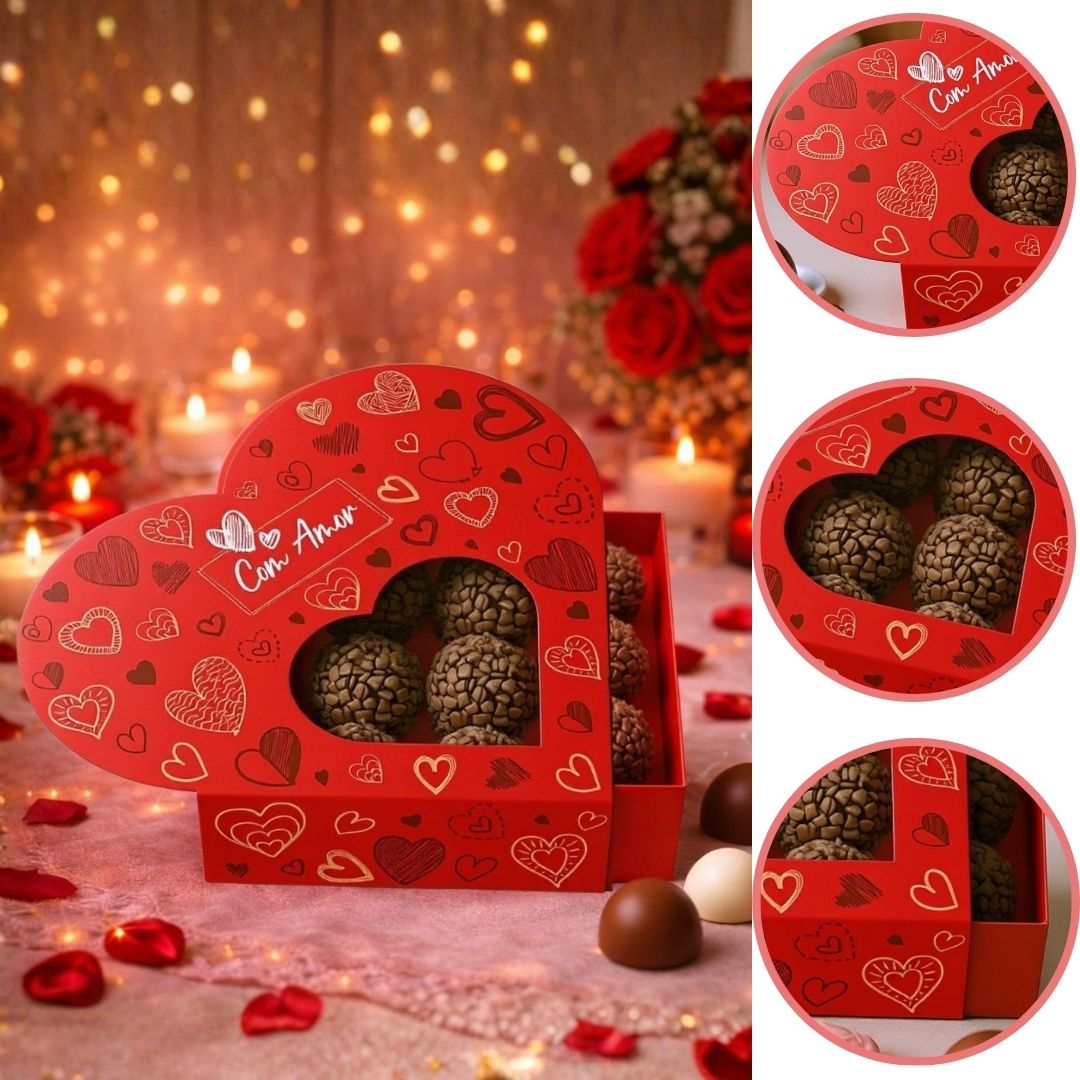 CAIXA CORAÇÃO 9 DOCES GAVETA COM VISOR