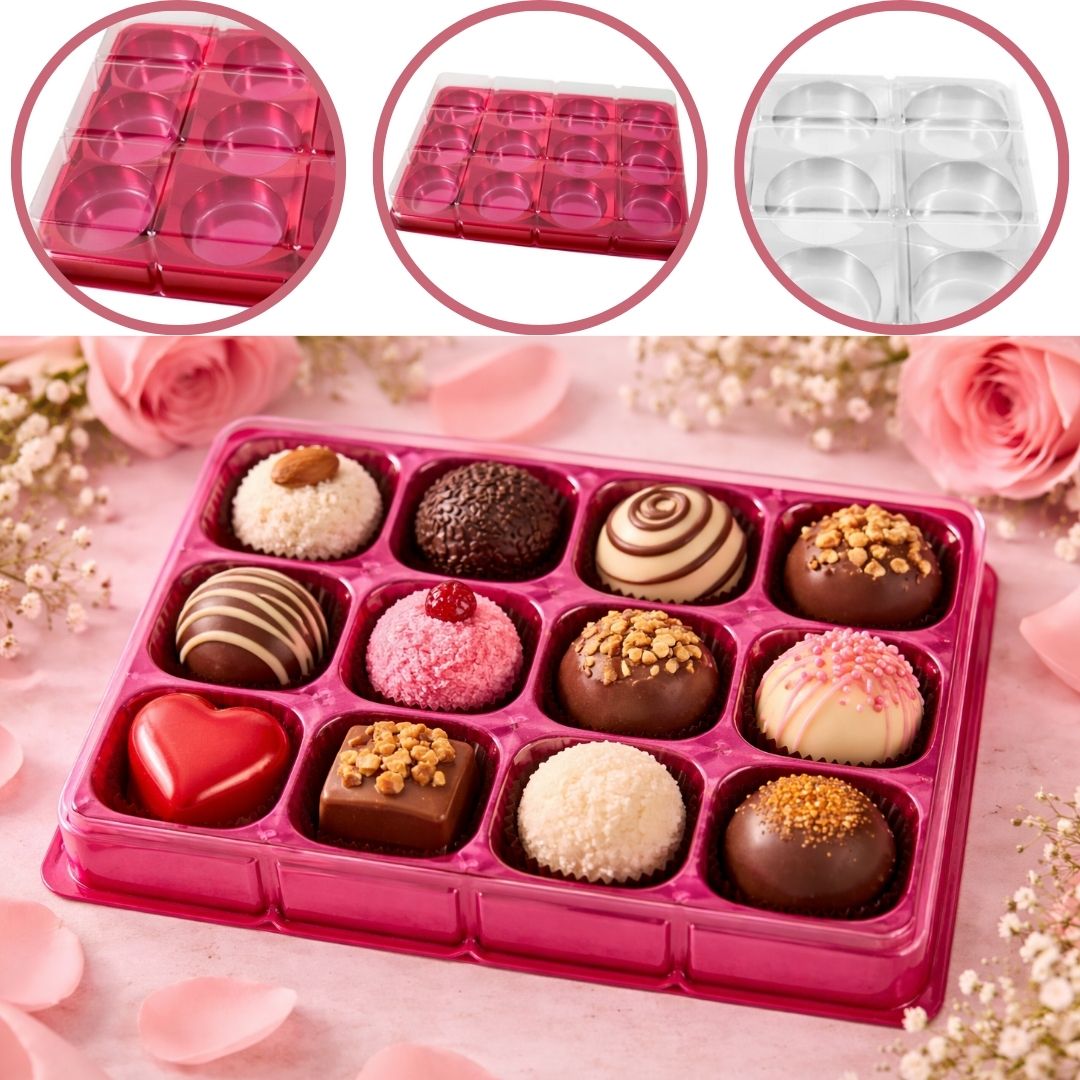 10 CAIXA EMBALAGEM P/ 12 DOCES E BOMBONS VERMELHO BWB 14272