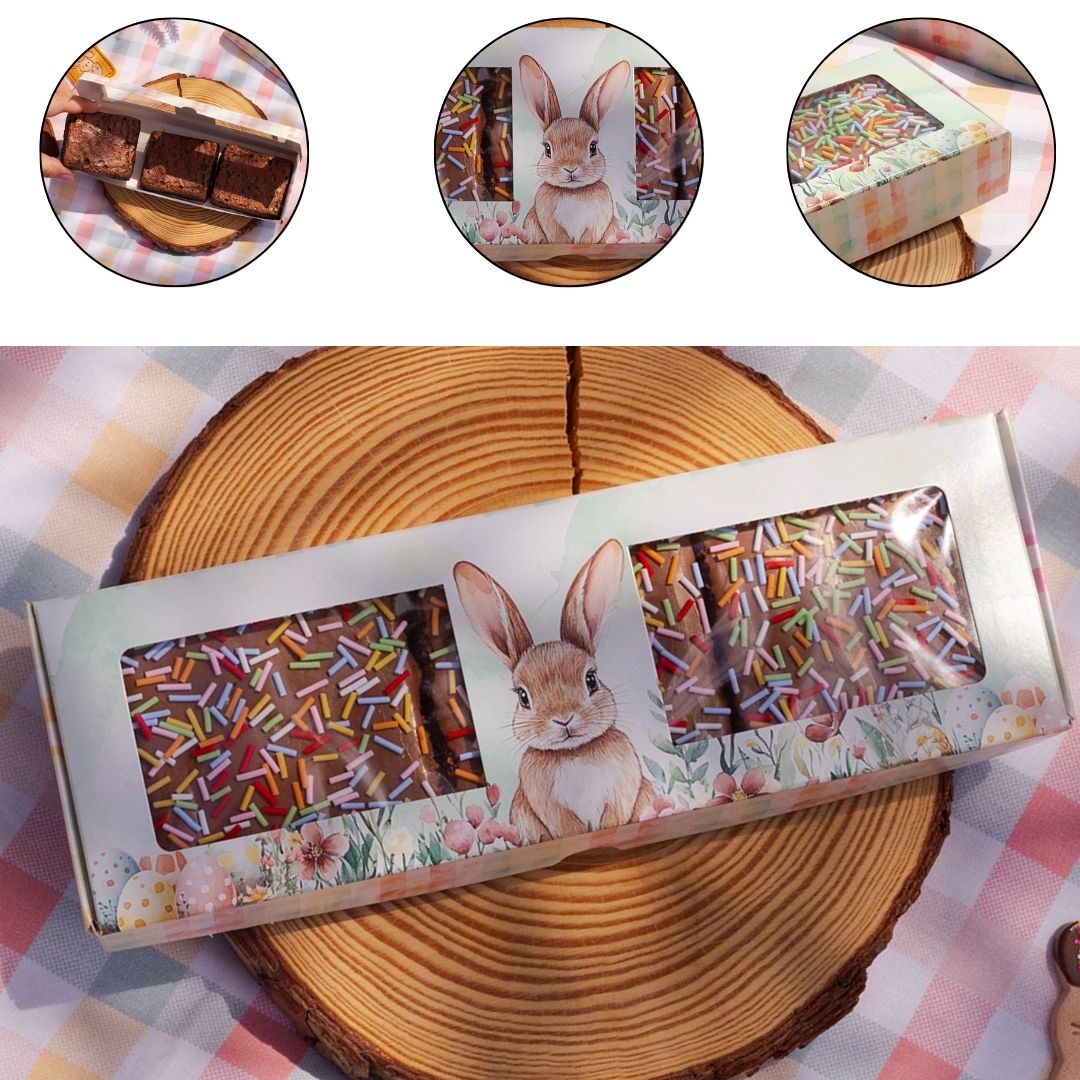 A Caixa para 3 Brownies da linha Páscoa Encantos é prática e elegante.