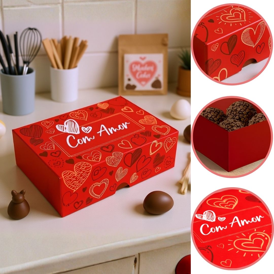 AUMENTE A DOSE DE CARINHO COM A CAIXA PRACTICE PARA 6 DOCES DA COLEÇÃO AMOR EM CAIXA. ESTA EMBALAGEM É A ESCOLHA PERFEITA PARA QUEM BUSCA UM VISUAL MODERNO E IMPACTANTE PARA SUAS CRIAÇÕES DE CONFEITARIA. IDEAL PARA PRESENTES COM DOCES.