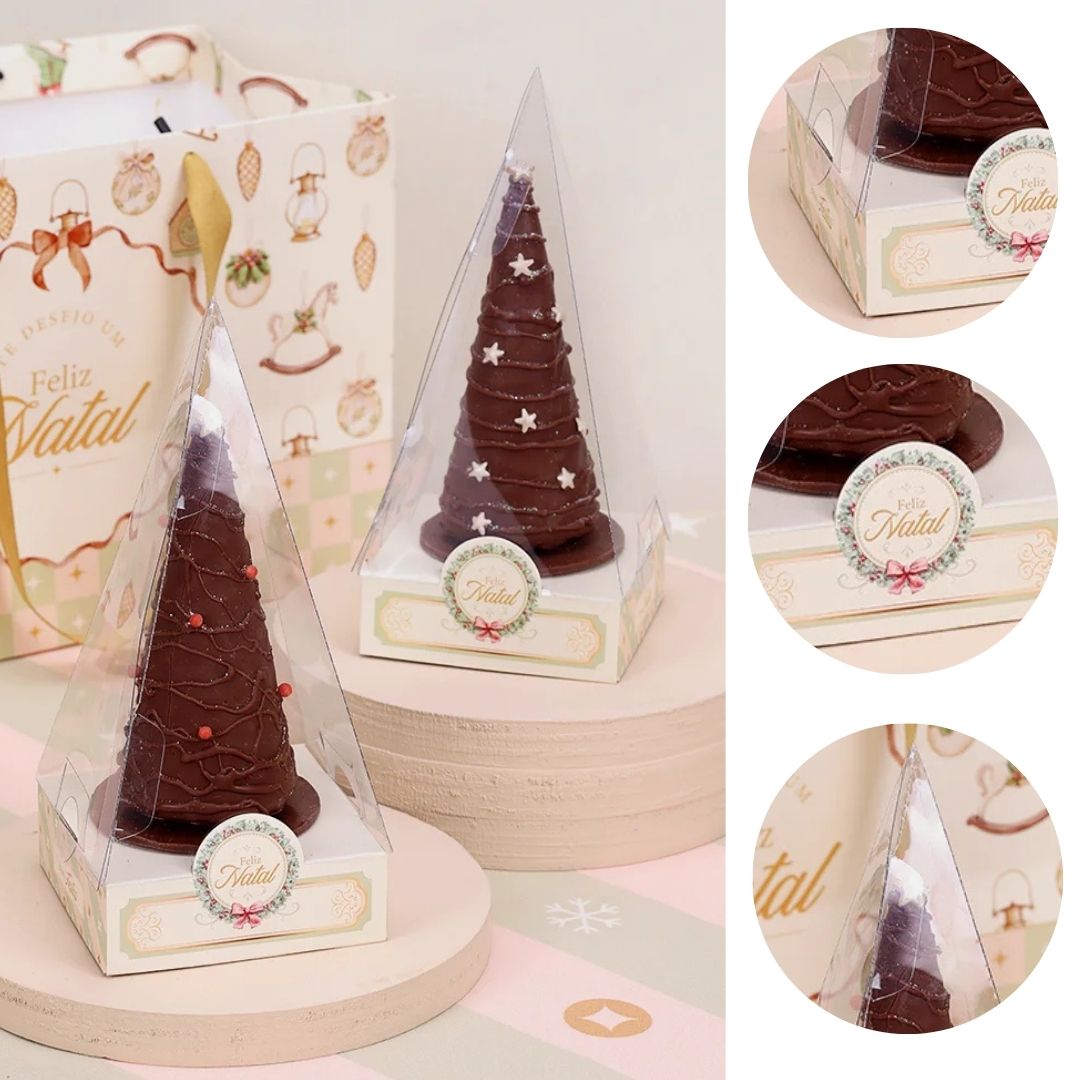 Transparência que valoriza o doce e agrega sofisticação à apresentação.