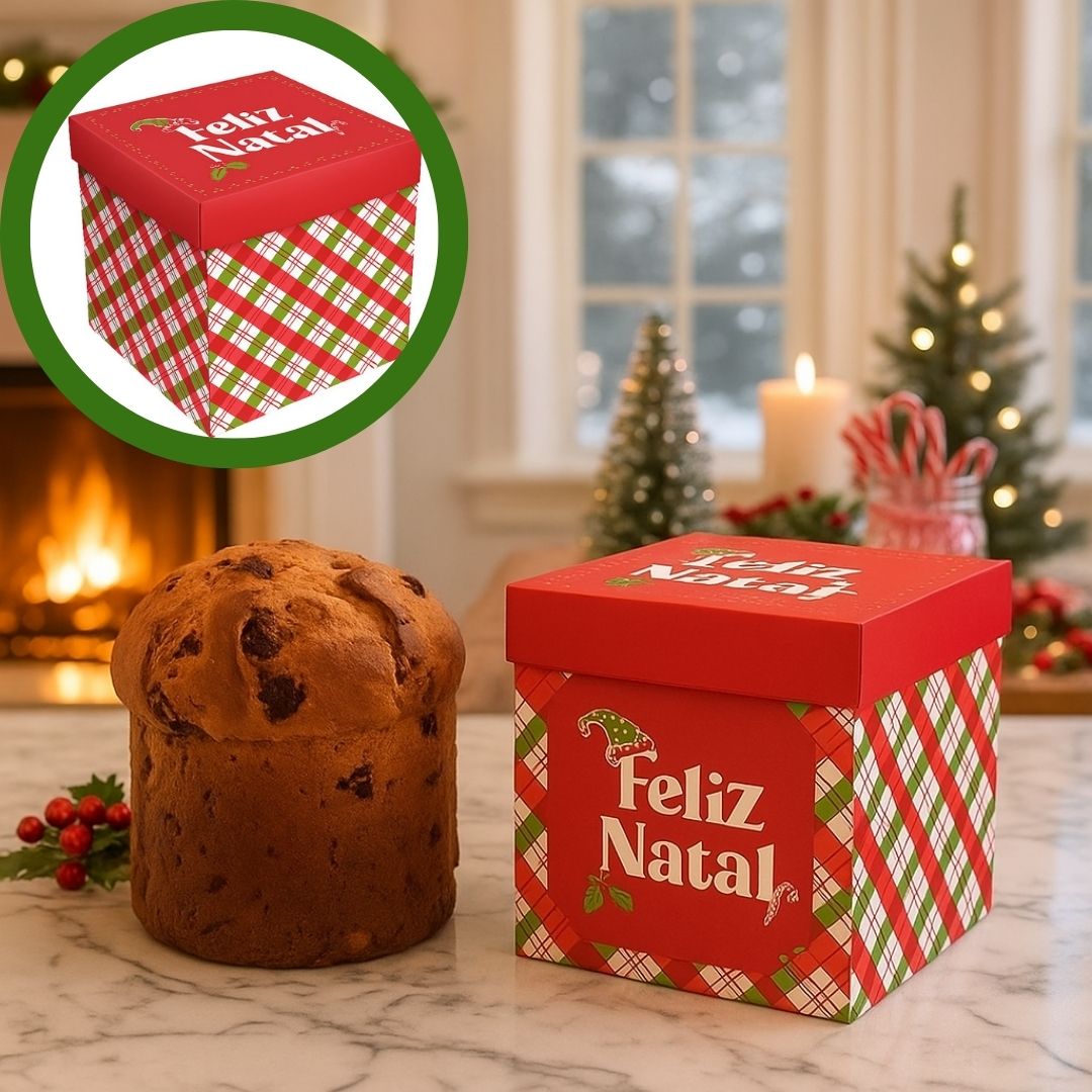 CAIXA P/ PANETONE 350G/500G C/ BERÇO 15,5X15,5X15,5 CM NT116 (JR NATAL OUTLET 2025)