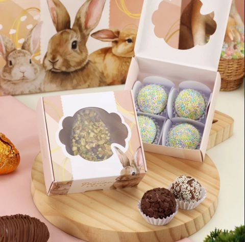 Lindas embalagens de PÁSCOA P/ impulsionar suas vendas. Confeccionada em papel triplx Premium. As Caixass possuem um designe único e de fácil montagem, que pode ser utilizadas P/ embalagem de ovos de páscoa, doces e chocolates