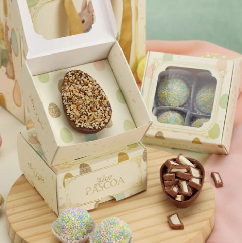Lindas embalagens de PÁSCOA P/ impulsionar suas vendas. Confeccionada em papel triplx Premium. As Caixass possuem um designe único e de fácil montagem, que pode ser utilizadas P/ embalagem de ovos de páscoa, doces e chocolates