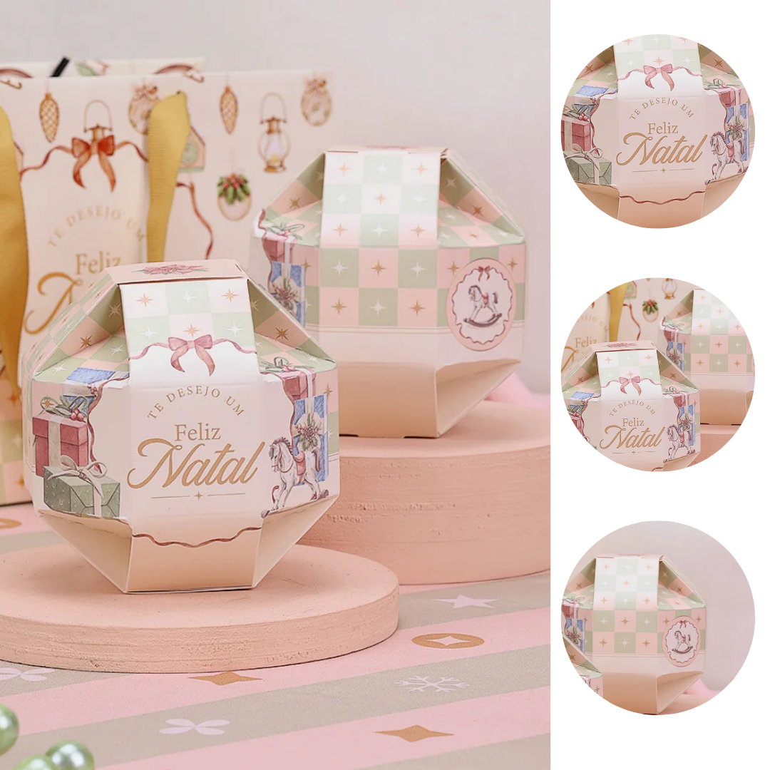 Comporta em média de 150g a 180g, ideal para bitz de chocolate, pão de mel, bombons, biscoitos ou outras delícias natalinas.