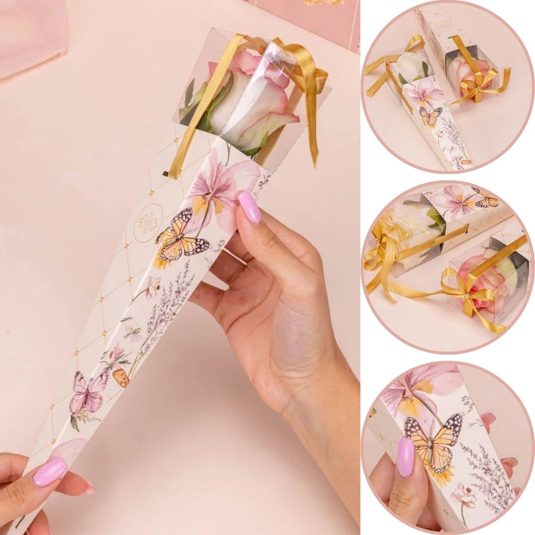 O produto refere-se somente à embalagem. Não acompanha rosa ou itens decorativos.