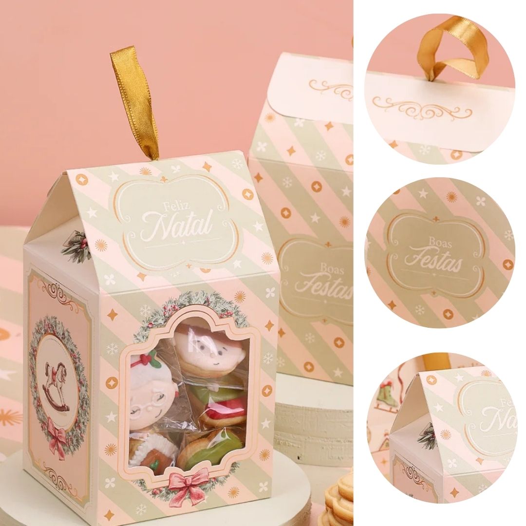 A embalagem possui capacidade média de 150g a 180g, sendo ideal para acomodar bitz de chocolate, biscoitos, cookies, pão de mel ou outras pequenas delícias. Além disso, seu formato também permite a utilização com um vidro de 240 ml, perfeito para doces artesanais, como geleias, brigadeiro de colher, bolo de pote, pudim, entre outros.
