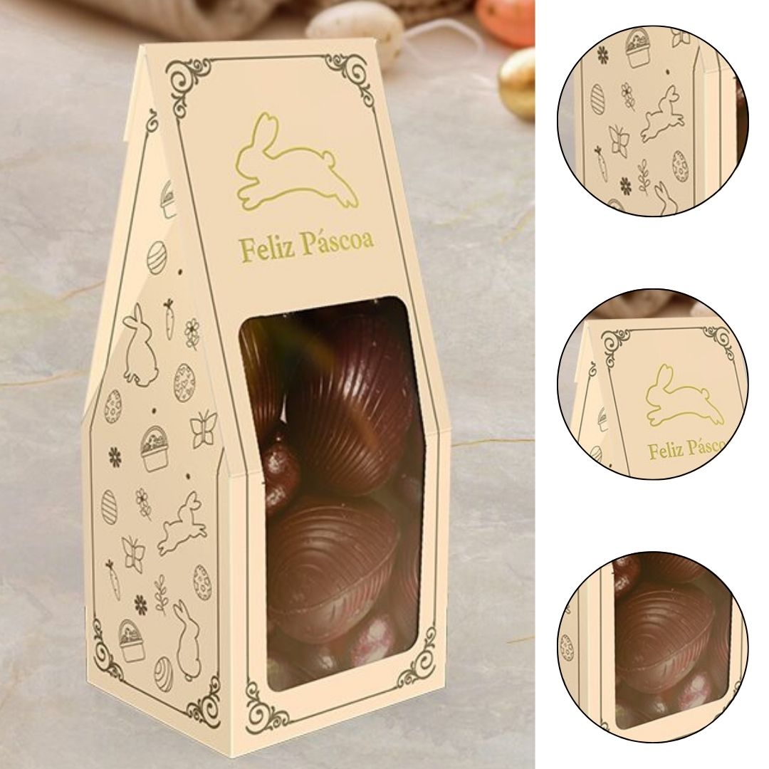 Com visor transparente e acabamento em hot stamping ouro, é ideal para doces finos e lembranças.