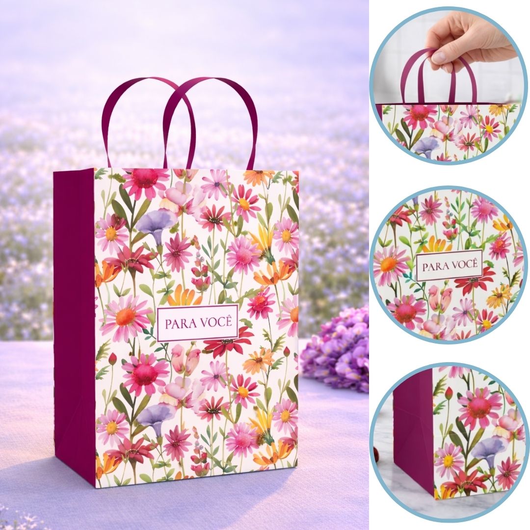 A SACOLA PP É A FINALIZAÇÃO DELICADA PARA SEUS PRESENTES. COM ESTAMPA FLORAL E ALÇAS CONFORTÁVEIS, ELA COMPLEMENTA QUALQUER MIMO COM ELEGÂNCIA E PRATICIDADE.