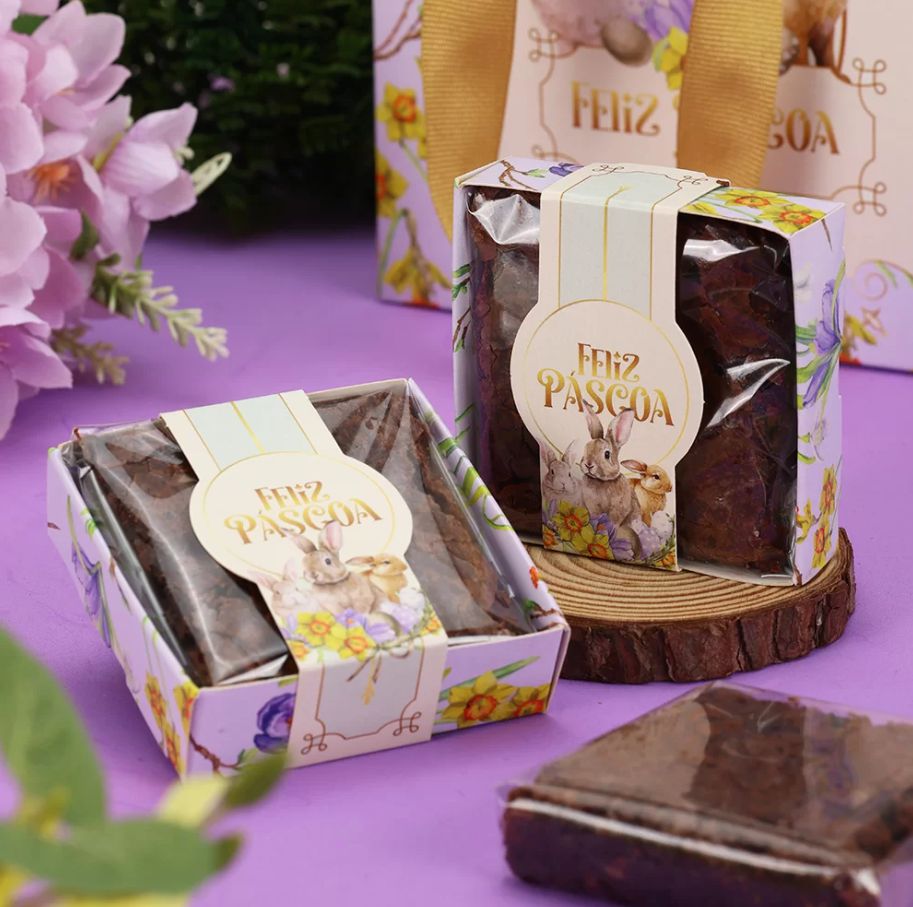 25 Embalagem Caixa para Brownie Pascoa Florescer 3809 ( PASCOA JANGO 2024 )