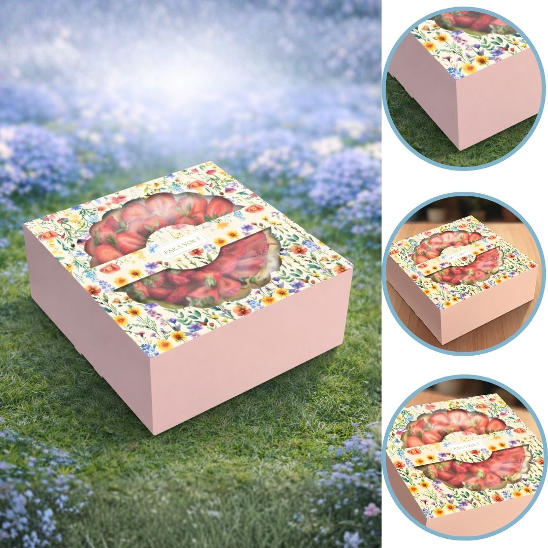 A CAIXA BOLO DA COLEÇÃO ATELIER DAS FLORES ELEVA O NÍVEL DE QUALQUER PRODUÇÃO DE CONFEITARIA. COM UM VISOR AMPLO E ESTAMPA FLORAL ENCANTADORA, ELA PROTEGE O BOLO ENQUANTO O TRANSFORMA EM UMA VERDADEIRA JOIA PRONTA PARA SER PRESENTEADA. A EMBALAGEM IDEAL PARA BOLOS.