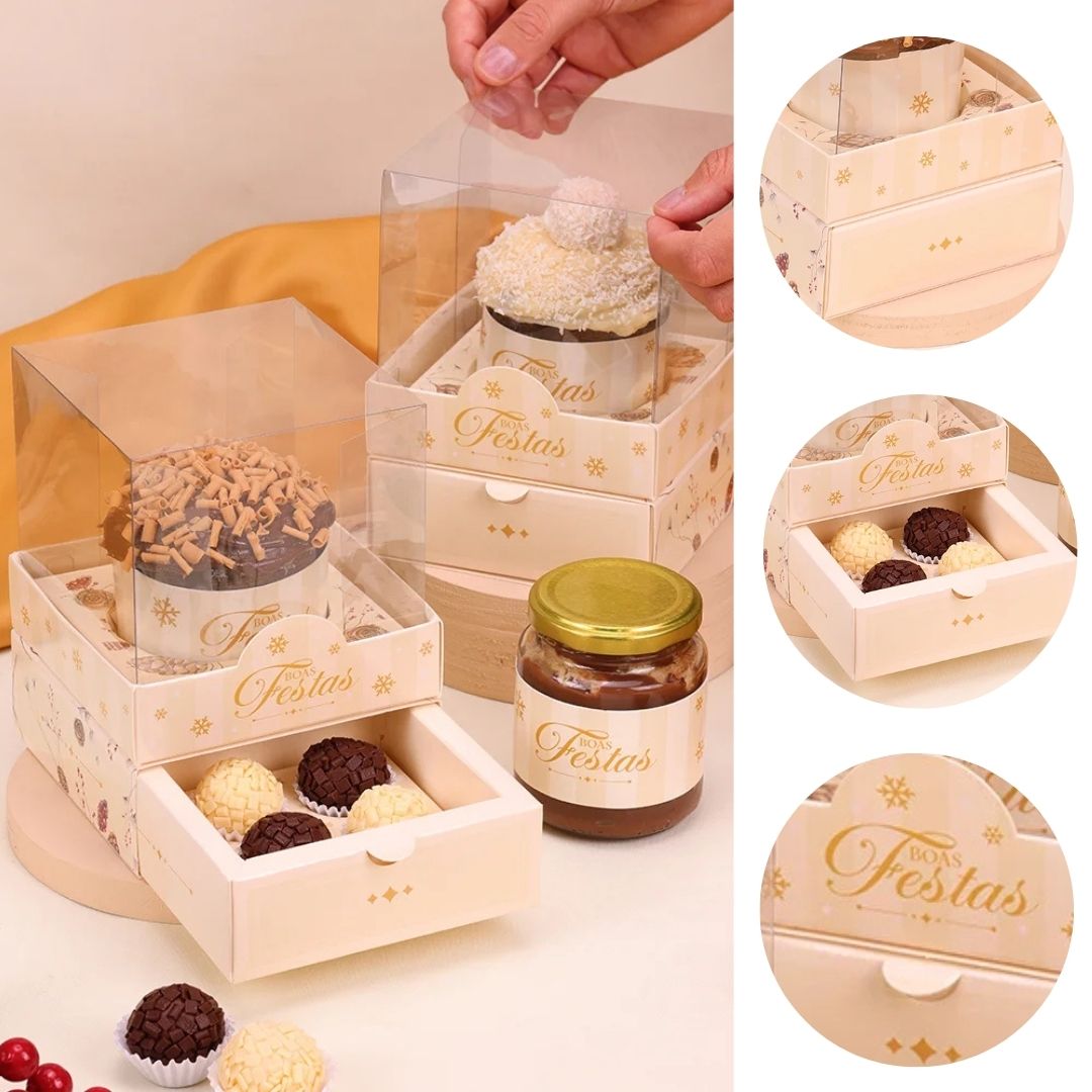 Caixa com Gaveta para Mini Panetone e 4 Doces Clássica