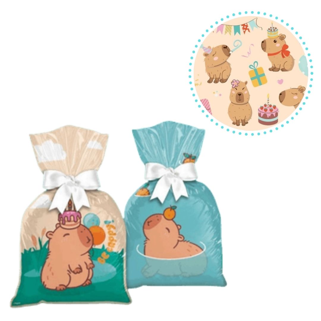 SACOLINHAS PLÁSTICAS COM LINDA ESTAMPA COM O TEMA "CAPIVARA", PERFEITAS PARA DEIXAR AS LEMBRANCINHAS DA SUA FESTA AINDA MAIS ESPECIAIS.