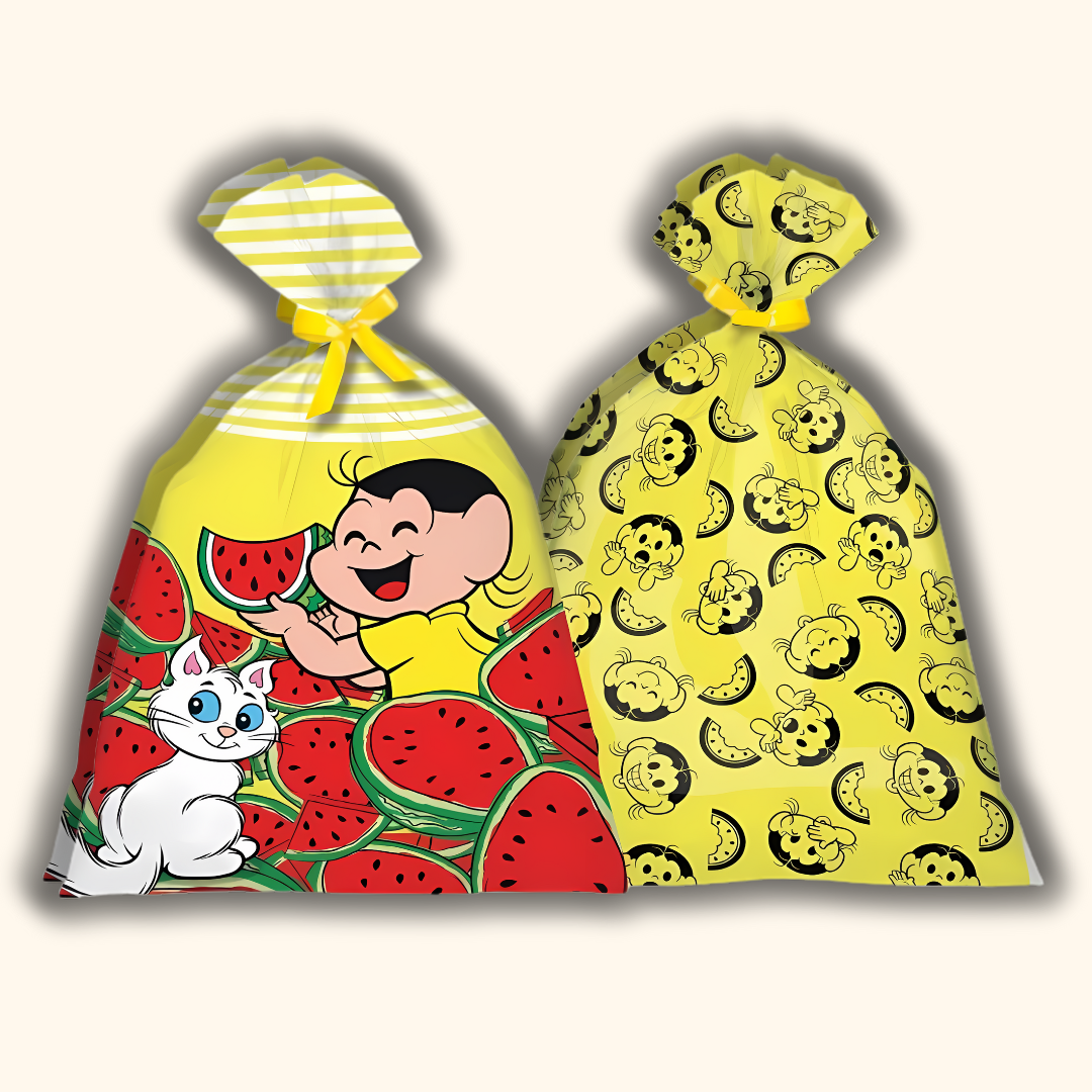 SACOLINHAS PLÁSTICAS COM LINDA ESTAMPA COM O TEMA "MAGALI MELANCIA", PERFEITAS PARA DEIXAR AS LEMBRANCINHAS DA SUA FESTA AINDA MAIS ESPECIAIS.