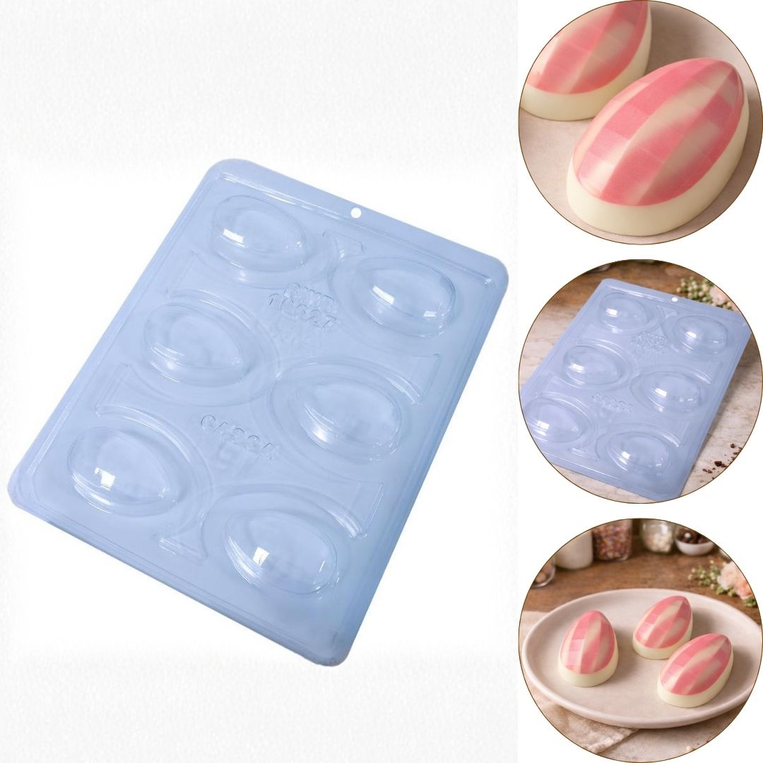 Forma especial com silicone (3 partes), ideal para produção de chocolates com muito mais praticidade e precisão. Possui uma “marquinha” indicando a quantidade necessária de chocolate, levando para geladeira uma única vez. Ela proporciona uma casca uniforme e um acabamento perfeito sempre com o mesmo peso.