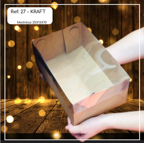 5 CAIXA PAPEL C/TAMPA TRANSP RETANGULAR KRAFT 19,5X13X4 (YIN) P0160