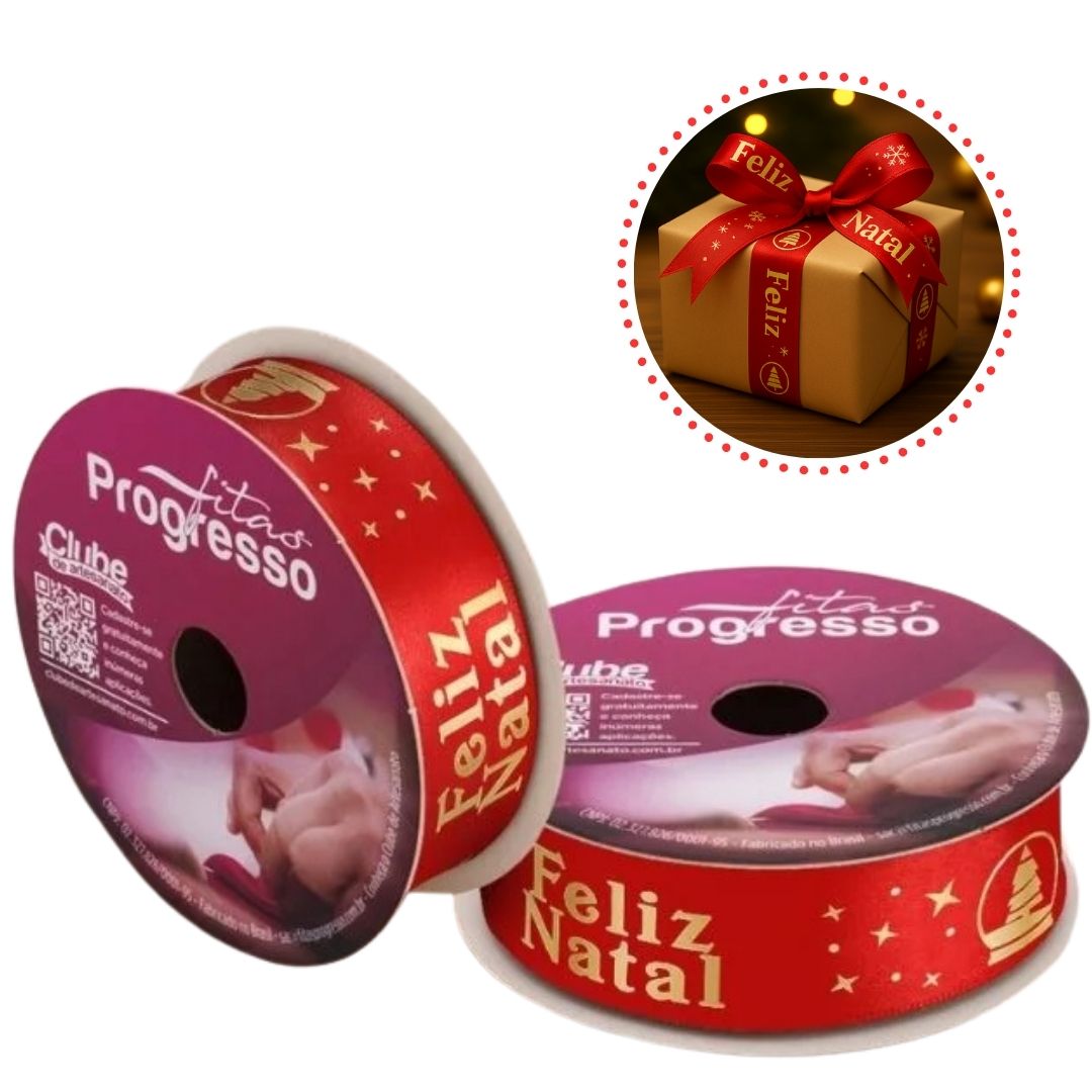 Dê um toque especial e sofisticado às suas embalagens de presentes e decorações natalinas com a fita de cetim Progresso.